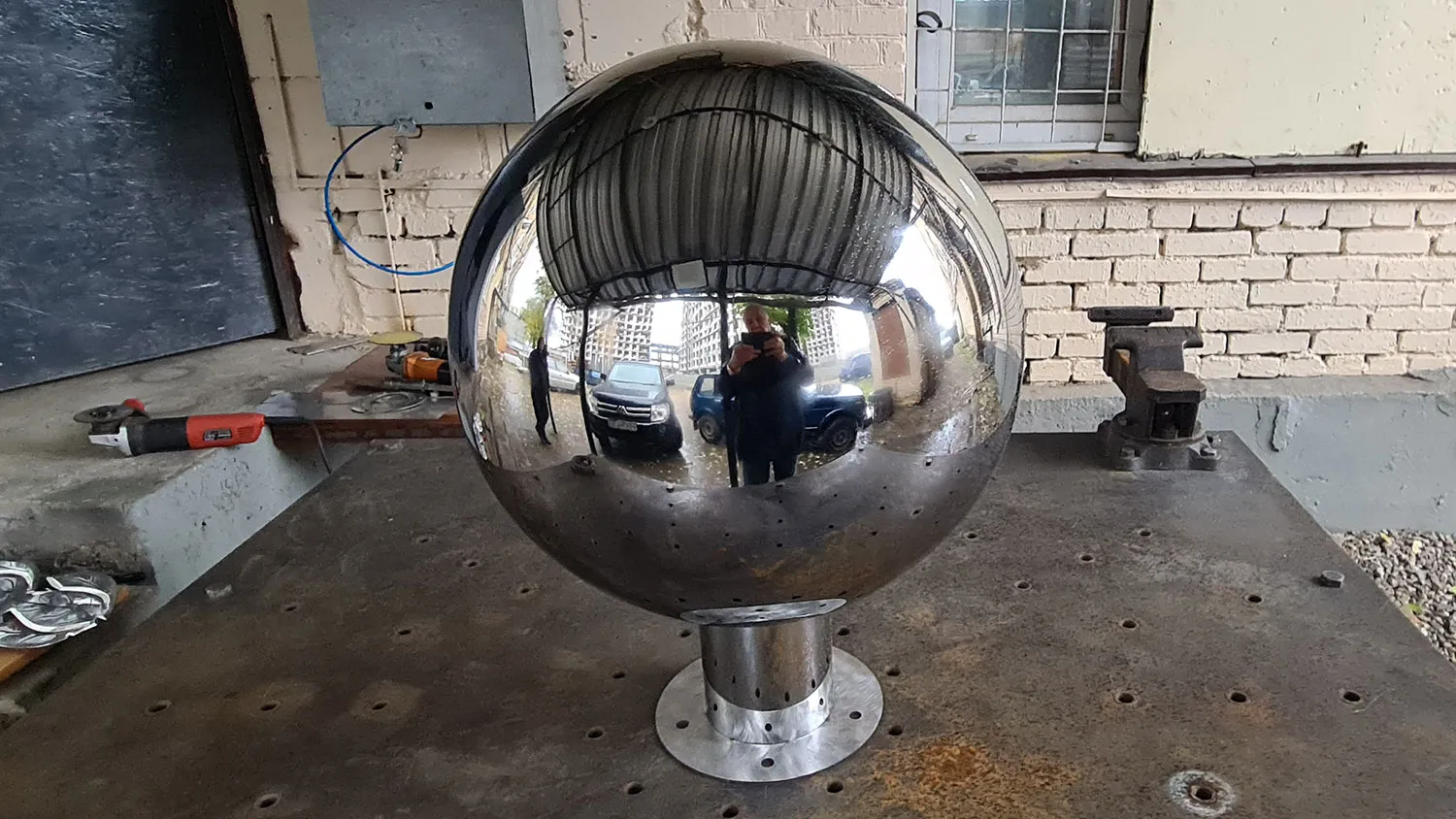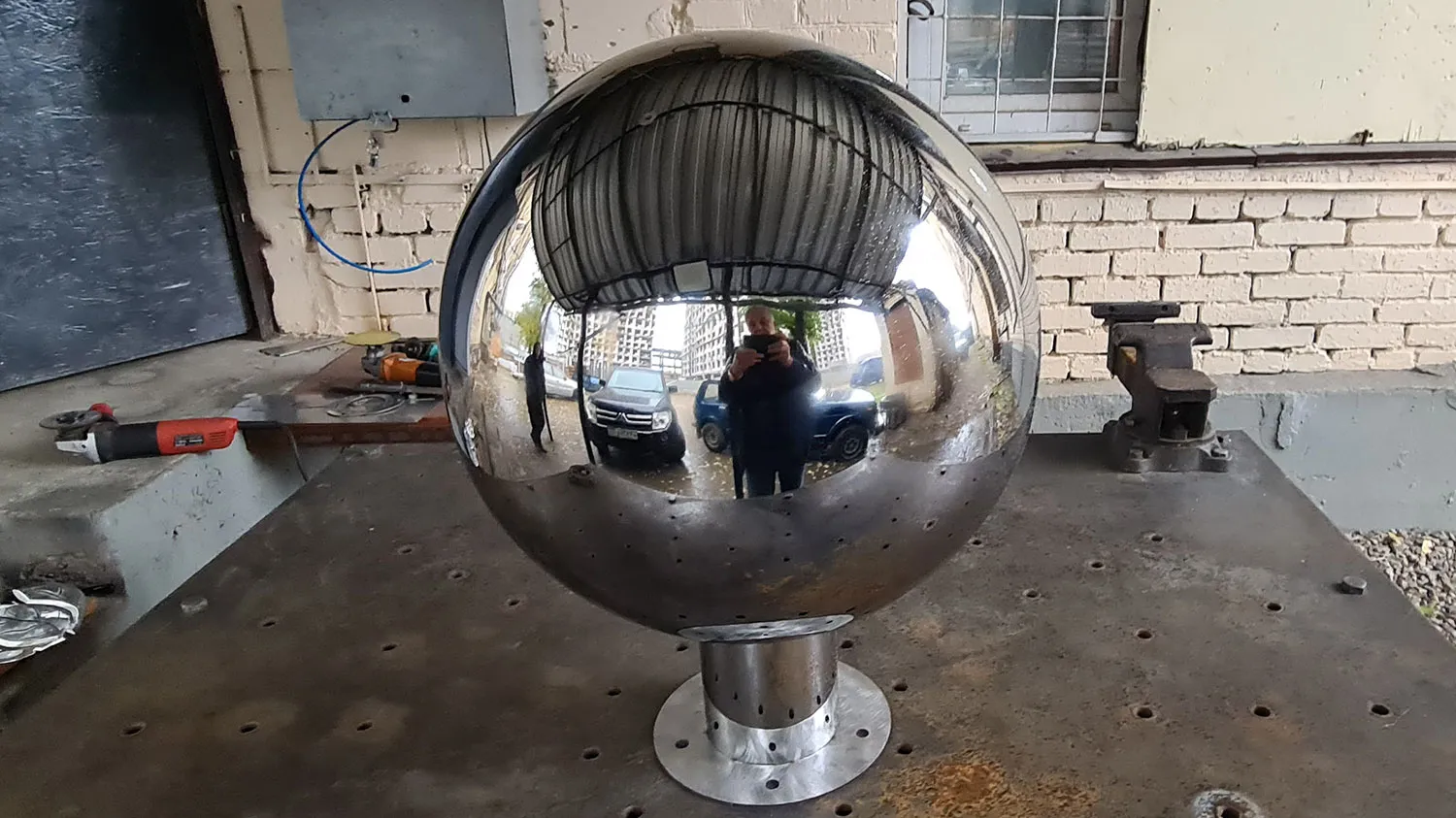 Полые зеркальные шары из нержавеющей стали используются как наружное украшение во многих проектах связанных с ландшафтным дизайном. Сферы с отделкой до зеркала создают точку притяжения и приковывают внимание зрителя.